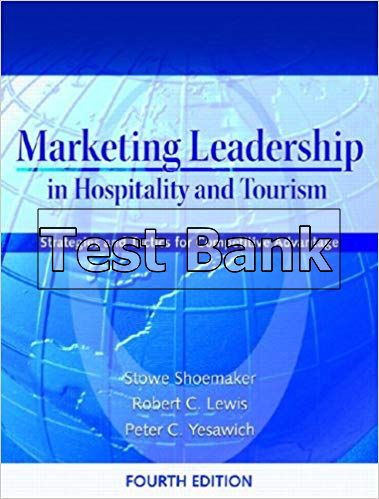 Marketing leadership in hospitality and tourism Strategies and tactics for competitive advantage 4th Edition Shoemaker Shoemaker Test Bank with answers of this Test Bank with answer keys for the tests question only NO Solutions for Textbook's Question for the Text book included on this purchase. If you want the Solutions Manual please search on the search box.
