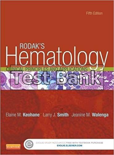 Rodaks Hematology Clinical Principles and Applications 5th Edition Keohane Keohane Test Bank with answer keys for the tests question only NO Solutions for Textbook's Question included on this purchase. If you want the Solutions Manual please search on the search box.